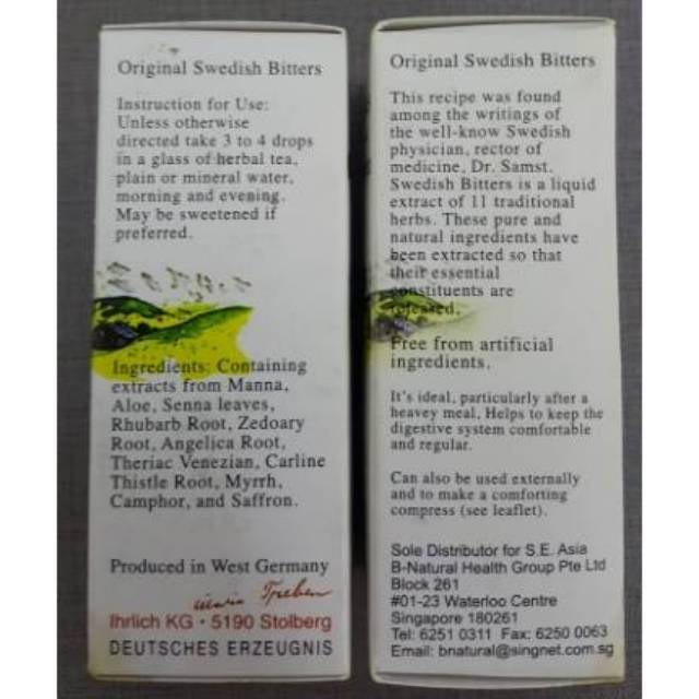 One of the main functions of the swedish bitters is to promote secretion of pancreatic and gastric juices and soothe the digestive tract.